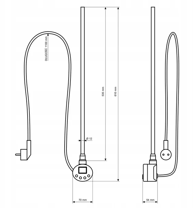 - Wymiary elementu sterującego: 70 mm x 54 mm.