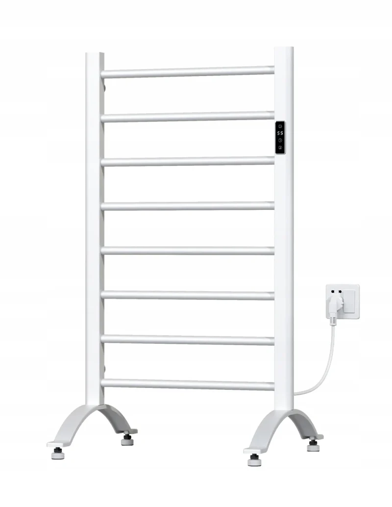 Grzejnik elektryczny biały 200W to urządzenie, które łączy nowoczesne technologie z minimalistycznym, estetycznym designem. Model ten został zaprojektowany z myślą o funkcjonalności i wygodzie użytkownika, a jednocześnie doskonale wpasowuje się w różne style wnętrz, zwłaszcza w łazienkach, pralniach i suszarniach. Dzięki drabinkowej konstrukcji oraz możliwości zarówno ściennego, jak i wolnostojącego montażu, urządzenie jest uniwersalne i nadaje się do wielu zastosowań.