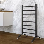 Smukła, pionowa konstrukcja sprawia, że grzejnik nie zajmuje dużo miejsca i dobrze sprawdza się również w mniejszych łazienkach. Drabinkowy układ szczebli pozwala wygodnie zawiesić ręczniki lub drobne elementy garderoby, skracając czas ich schnięcia.