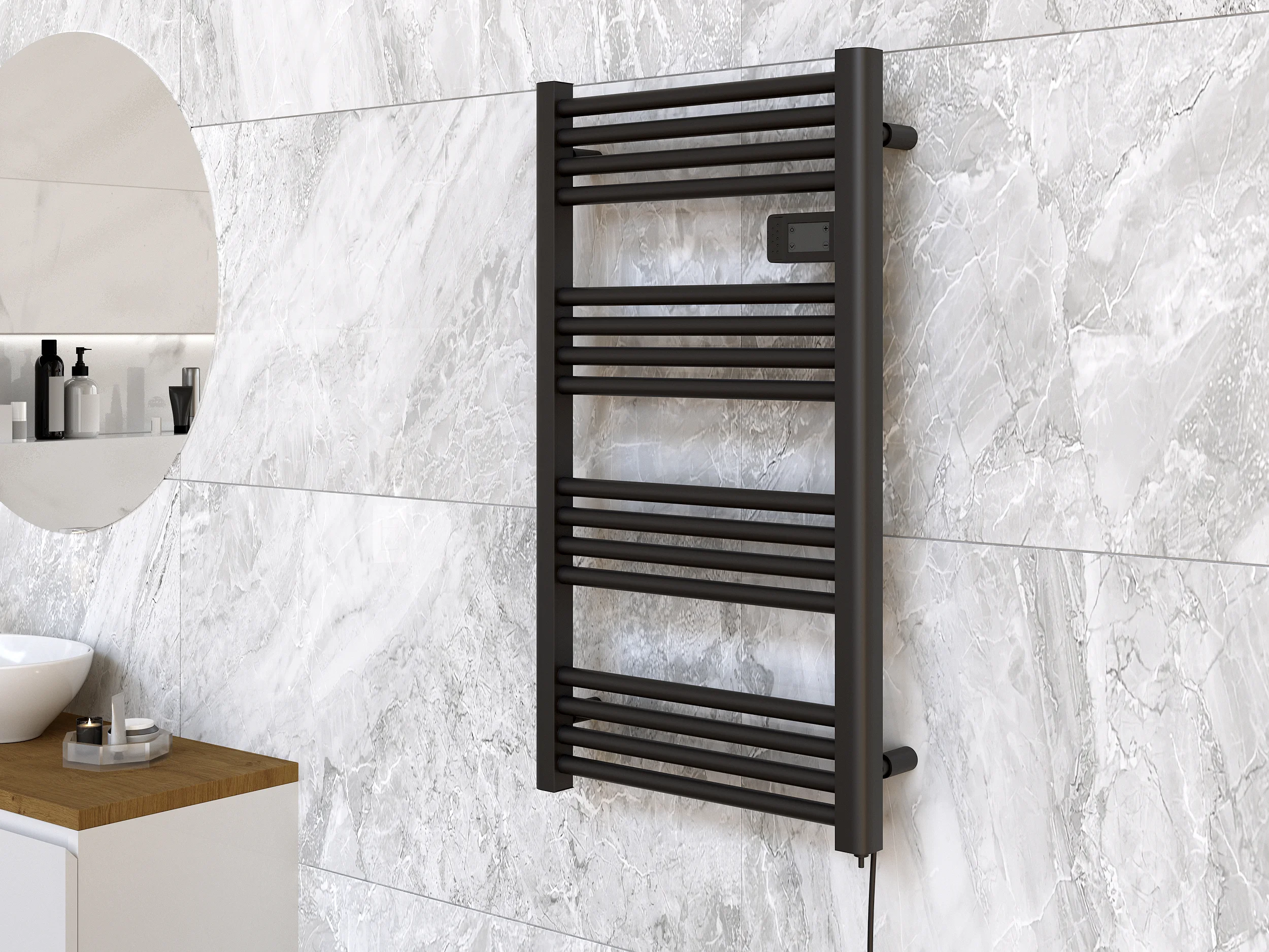Czarny grzejnik łazienkowy PAGO – elektryczna drabinka łazienkowa 500 W