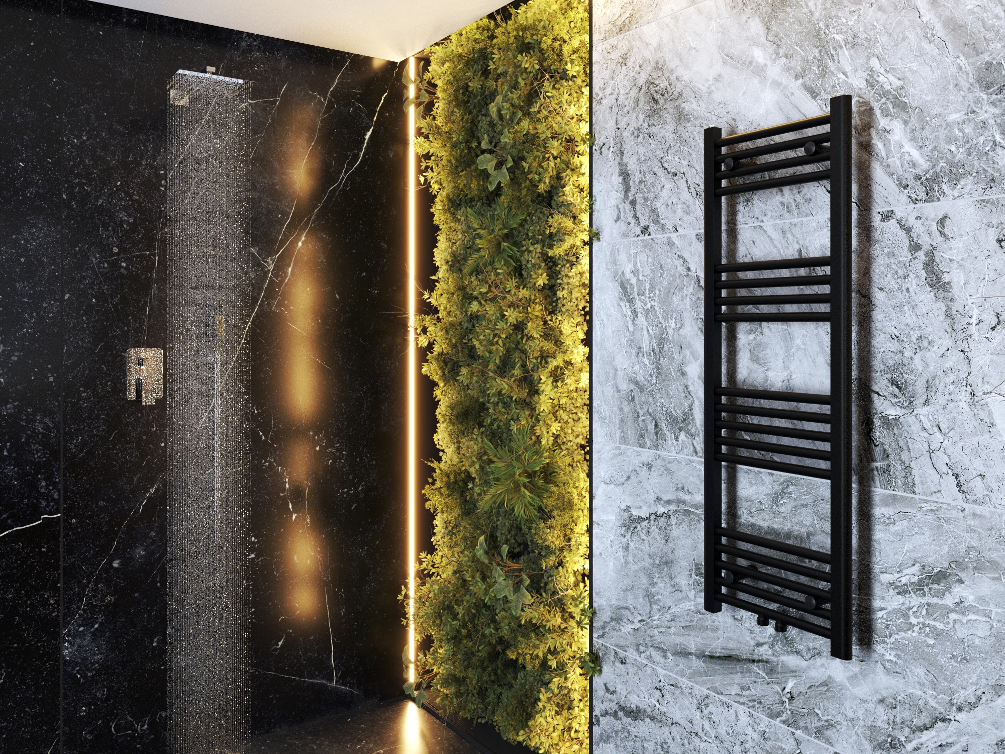 Grzejnik łazienkowy kaloryfer nowoczesny drabinkowy biały 120×40 cm Raven to praktyczne i estetyczne rozwiązanie dedykowane do nowoczesnych wnętrz. Dzięki swojemu minimalistycznemu designowi doskonale wpasowuje się w aranżacje łazienkowe, dodając im charakteru i elegancji. Zapewnia efektywne ogrzewanie oraz trwałość, dzięki której będzie służył przez długie lata. Grzejnik został zaprojektowany w formie drabinki, co nie tylko wspiera funkcjonalność, ale również ułatwia suszenie ręczników lub innych tekstyliów. Możliwość podłączenia zarówno do centralnego ogrzewania, jak i wyposażenie w opcjonalną grzałkę elektryczną sprawia, że można korzystać z jego zalet przez cały rok, niezależnie od sezonu grzewczego.