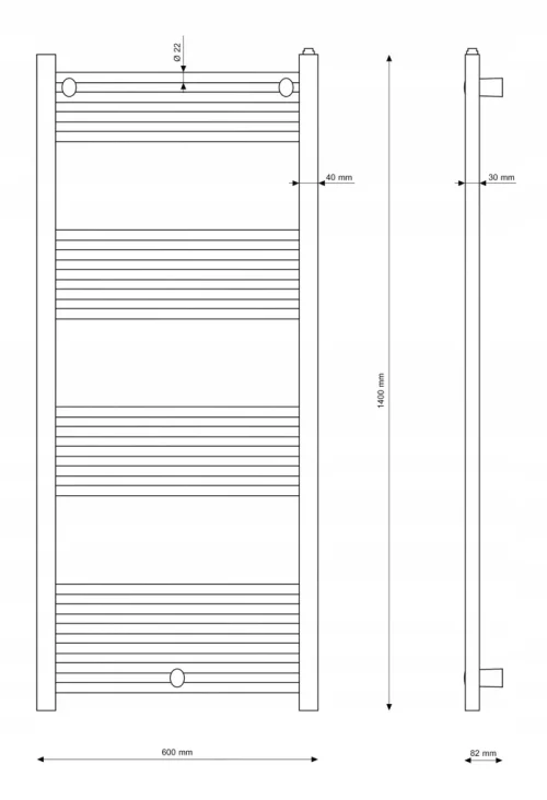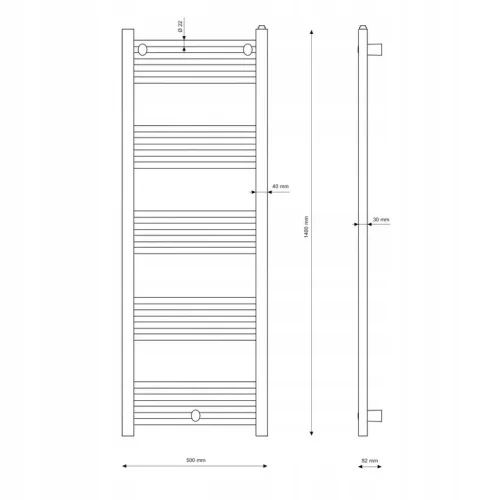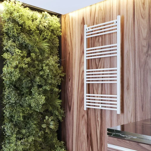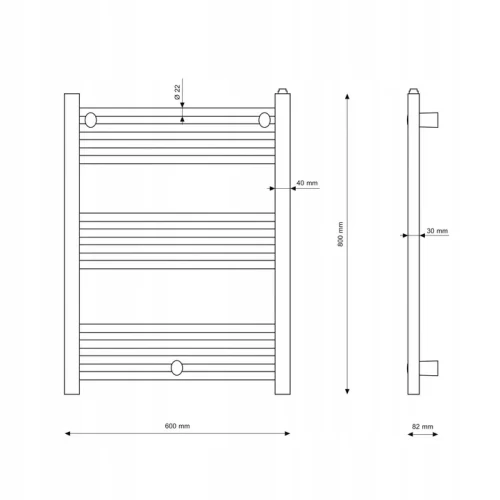 Grzejnik został wykonany ze stali, co gwarantuje jego trwałość na lata intensywnego użytkowania. Jego minimalistyczny wygląd sprawia, że pasuje zarówno do klasycznych aranżacji, jak i bardziej współczesnych projektów wnętrz. Możliwość podłączenia grzałki elektrycznej czyni ten produkt jeszcze bardziej wszechstronnym, pozwalając na jego całoroczne użytkowanie niezależnie od centralnego systemu grzewczego.