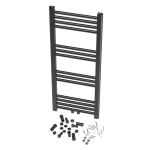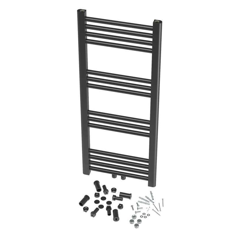 Grzejnik Raven dostarczany jest z wszystkimi niezbędnymi elementami umożliwiającymi jego montaż i podłączenie. W komplecie znajdują się zaślepki ½ cala oraz odpowietrznik, co pozwala na przygotowanie grzejnika do użytkowania zaraz po instalacji. Do zestawu dołączony jest również funkcjonalny zestaw montażowy, który umożliwia szybkie i łatwe zamocowanie grzejnika na ścianie. Dzięki temu użytkownicy mogą uniknąć dodatkowych kosztów związanych z zakupem akcesoriów.