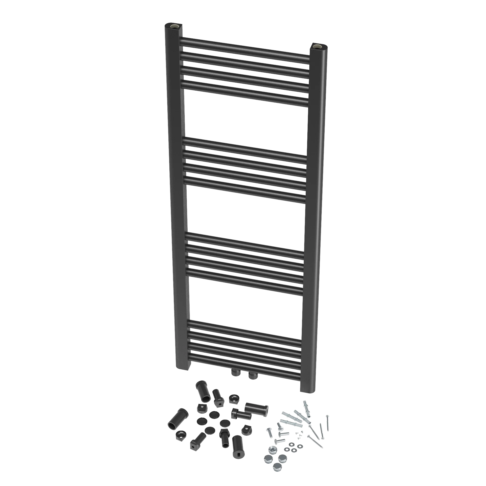 Grzejnik łazienkowy RAVEN dostarczany jest w komplecie z wszystkimi niezbędnymi elementami, które pozwalają na szybki i łatwy montaż. W skład zestawu wchodzą:
