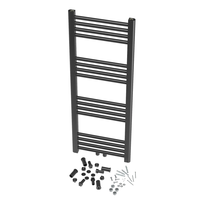 Grzejnik łazienkowy RAVEN dostarczany jest w komplecie z wszystkimi niezbędnymi elementami, które pozwalają na szybki i łatwy montaż. W skład zestawu wchodzą: