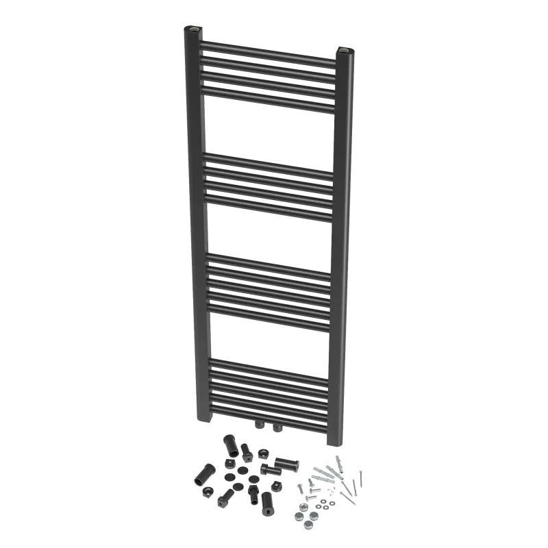 Grzejnik Raven to praktyczne rozwiązanie o znakomitej estetyce. W zestawie znajdują się wszystkie niezbędne elementy do montażu, co pozwala na szybkie i łatwe zainstalowanie urządzenia na ścianie. Model Raven stanowi doskonały balans między estetyką, trwałością i funkcjonalnością, dlatego jest idealnym wyborem zarówno do nowych, jak i odmienianych aranżacji łazienek.