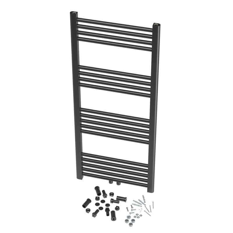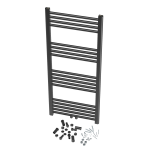 Grzejnik łazienkowy Raven dostarczany jest jako kompletny zestaw gotowy do montażu. W jego skład wchodzą:
