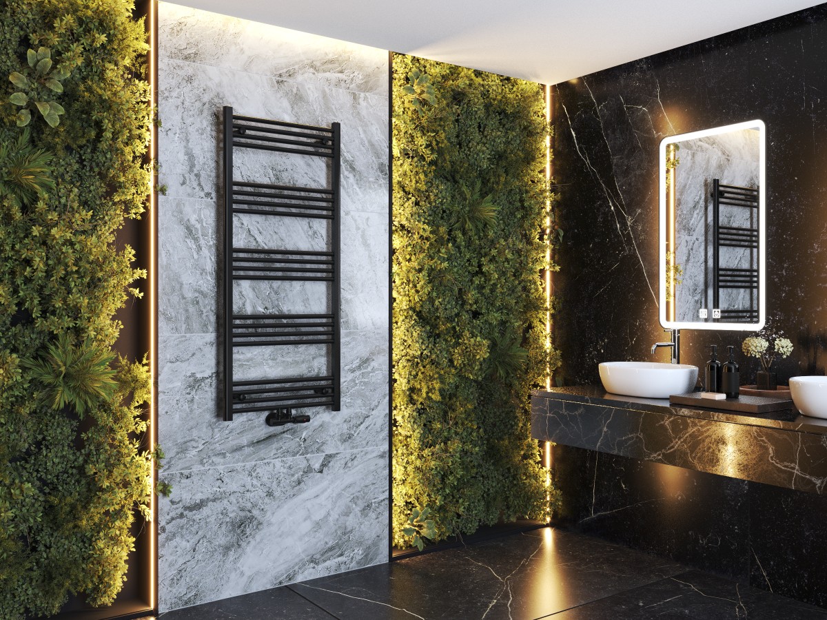 Czarny kolor oraz minimalistyczny design dodają łazience nowoczesnego charakteru i elegancji. Model ten doskonale komponuje się z popularnymi obecnie stylami wnętrzarskimi, takimi jak styl loftowy, industrialny czy skandynawski. Grzejnik RAVEN nie tylko spełnia praktyczne funkcje, ale stanowi również element dekoracyjny, który podkreśli wyjątkowość każdej łazienki.