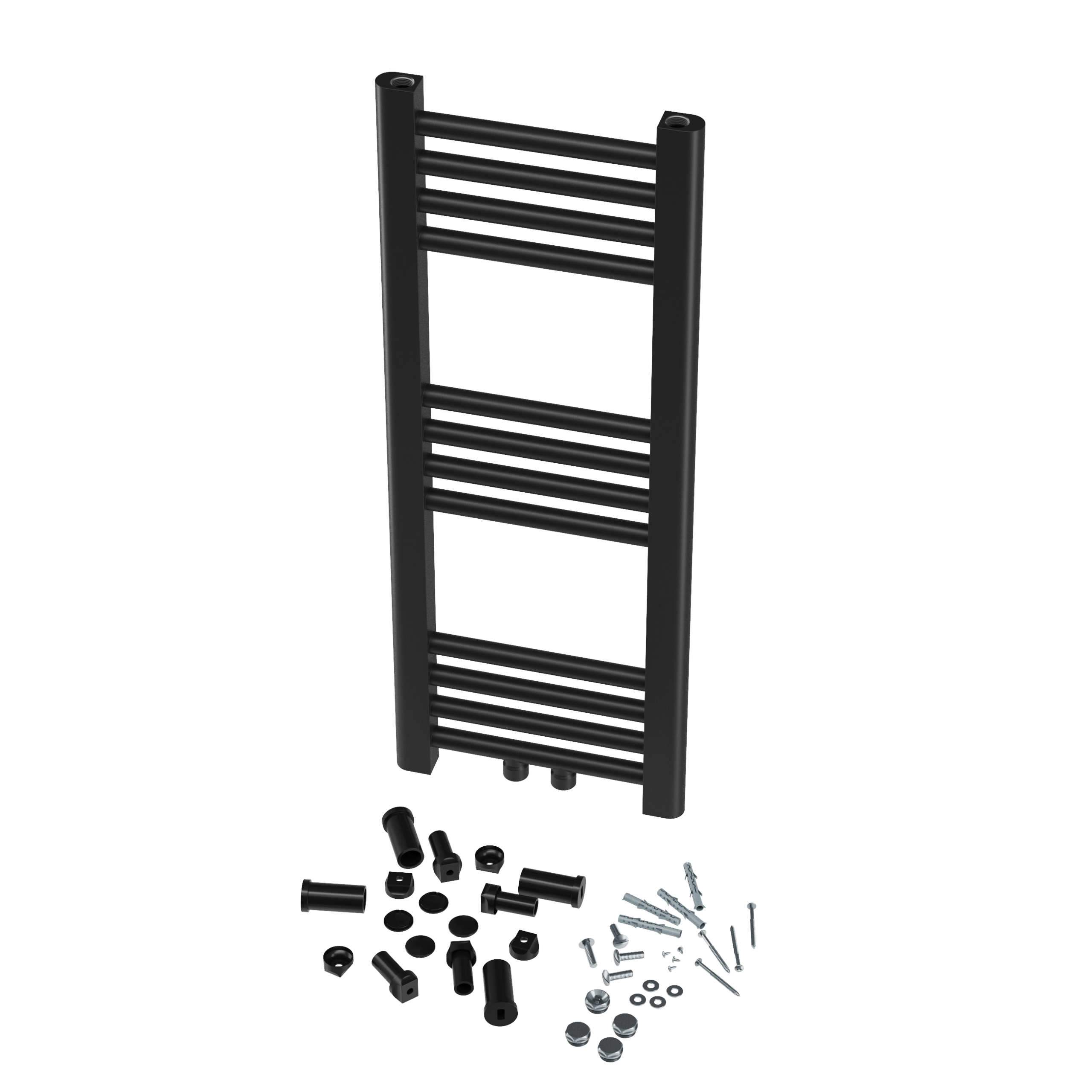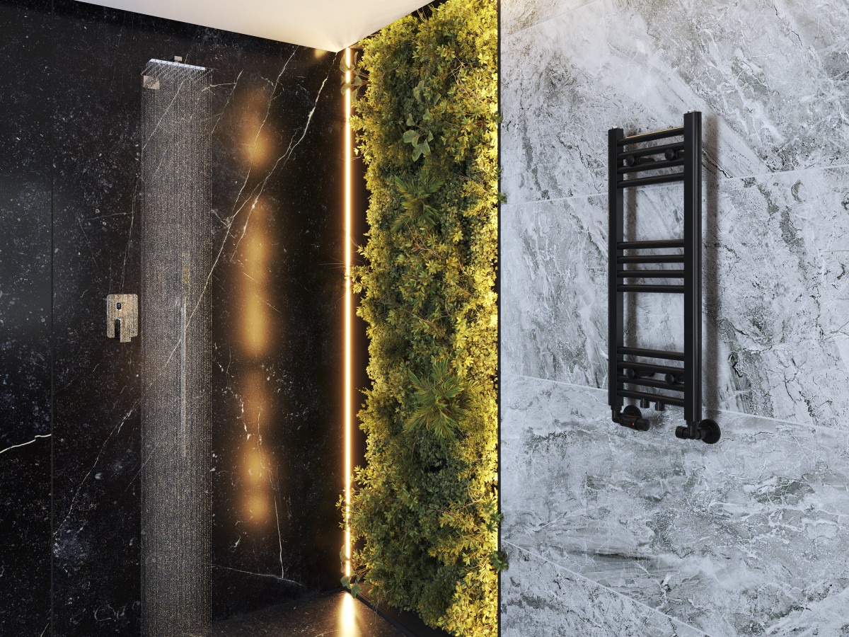 Czarny matowy kolor, prosty drabinkowy kształt oraz kompaktowe wymiary pozwalają na harmonijne wpisanie się grzejnika w wygląd współczesnych łazienek. Jego elegancja oraz minimalistyczna forma pasują zarówno do klasycznych, jak i nowoczesnych aranżacji. Grzejnik Raven doskonale współgra z różnego rodzaju dodatkami i wykończeniami.