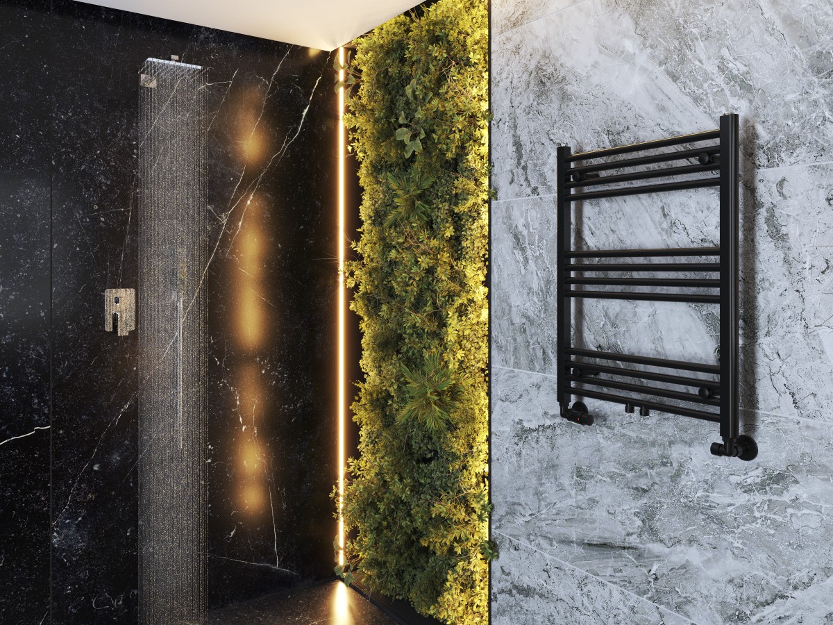 Grzejnik łazienkowy Raven to połączenie nowoczesnego designu, funkcjonalności oraz trwałości, które doskonale sprawdzi się w każdej łazience urządzonej w stylu minimalistycznym lub industrialnym. Jego drabinkowa konstrukcja i czarny kolor nadają wnętrzu charakteru i elegancji, jednocześnie podkreślając nowoczesną estetykę. Model o wymiarach 80×60 cm został zaprojektowany z myślą o wygodzie użytkowania, maksymalnej wydajności cieplnej oraz łatwym montażu. Raven łączy w sobie trwałe materiały, przemyślane rozwiązania techniczne oraz możliwość dostosowania do indywidualnych potrzeb użytkownika dzięki różnym opcjom podłączenia i kompatybilności z grzałką elektryczną.