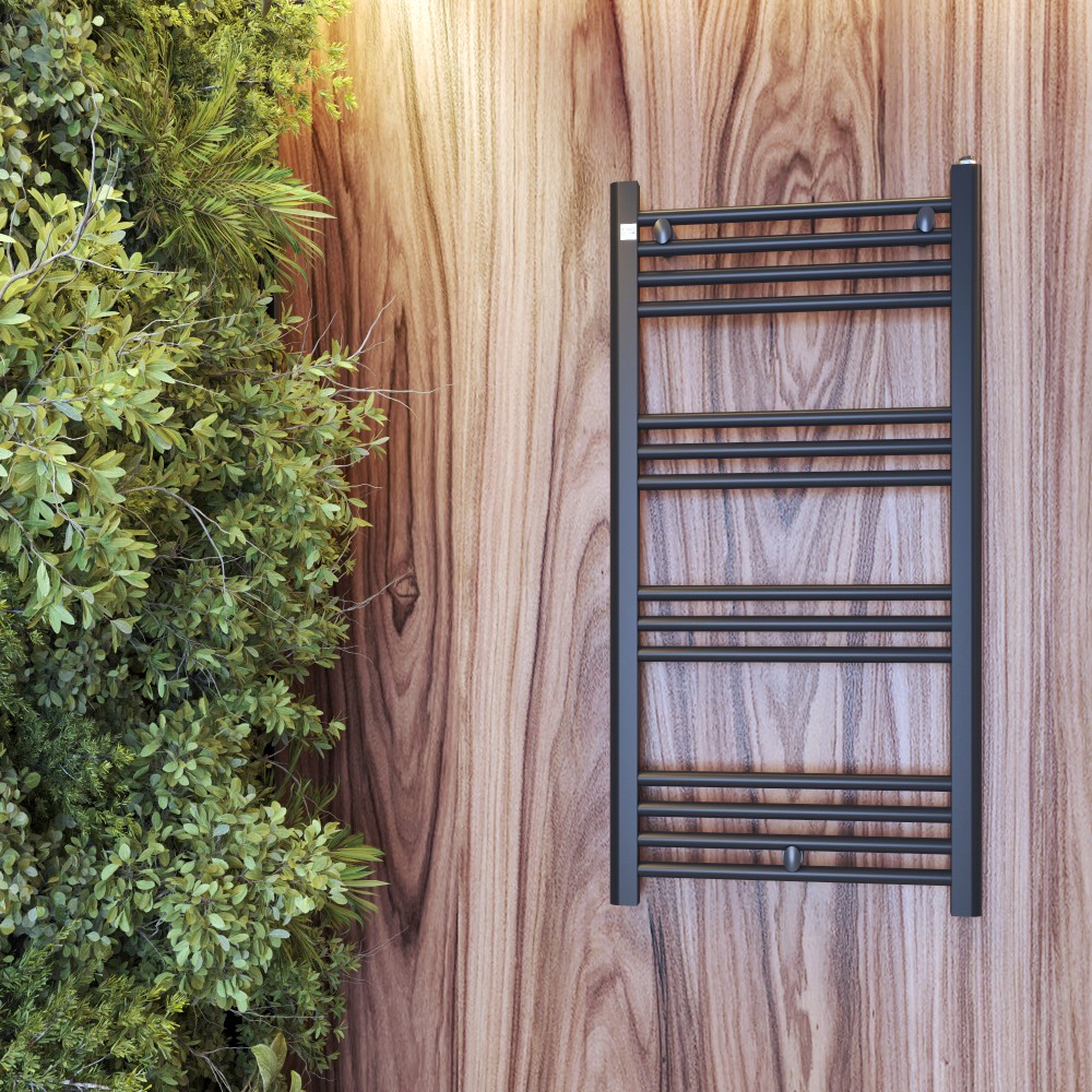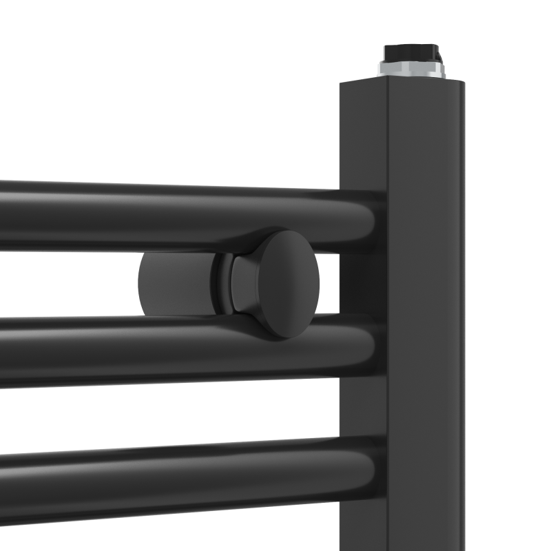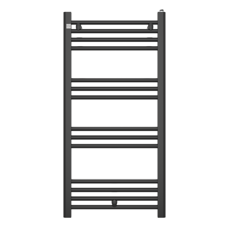 Grzejnik łazienkowy 100/50 cm czarny Peutro z grzałką elektryczną One Touch to nowoczesne i funkcjonalne rozwiązanie, które idealnie sprawdzi się w każdej łazience. Dzięki minimalistycznej formie oraz modnemu czarnemu kolorowi model ten z łatwością dopasowuje się do różnorodnych stylów wnętrzarskich, dodając pomieszczeniu elegancji i praktyczności. Jest to produkt, który umożliwia komfort użytkowania przez cały rok, niezależnie od sezonu grzewczego, dzięki możliwości podłączenia grzałki elektrycznej. Dodatkowo, dzięki swojej konstrukcji drabinkowej, grzejnik stanowi wygodne miejsce do suszenia ręczników i innych elementów garderoby.