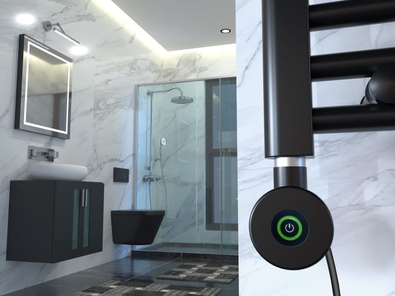 Grzejnik łazienkowy 100×50 cm czarny Peutro z grzałką elektryczną One Touch