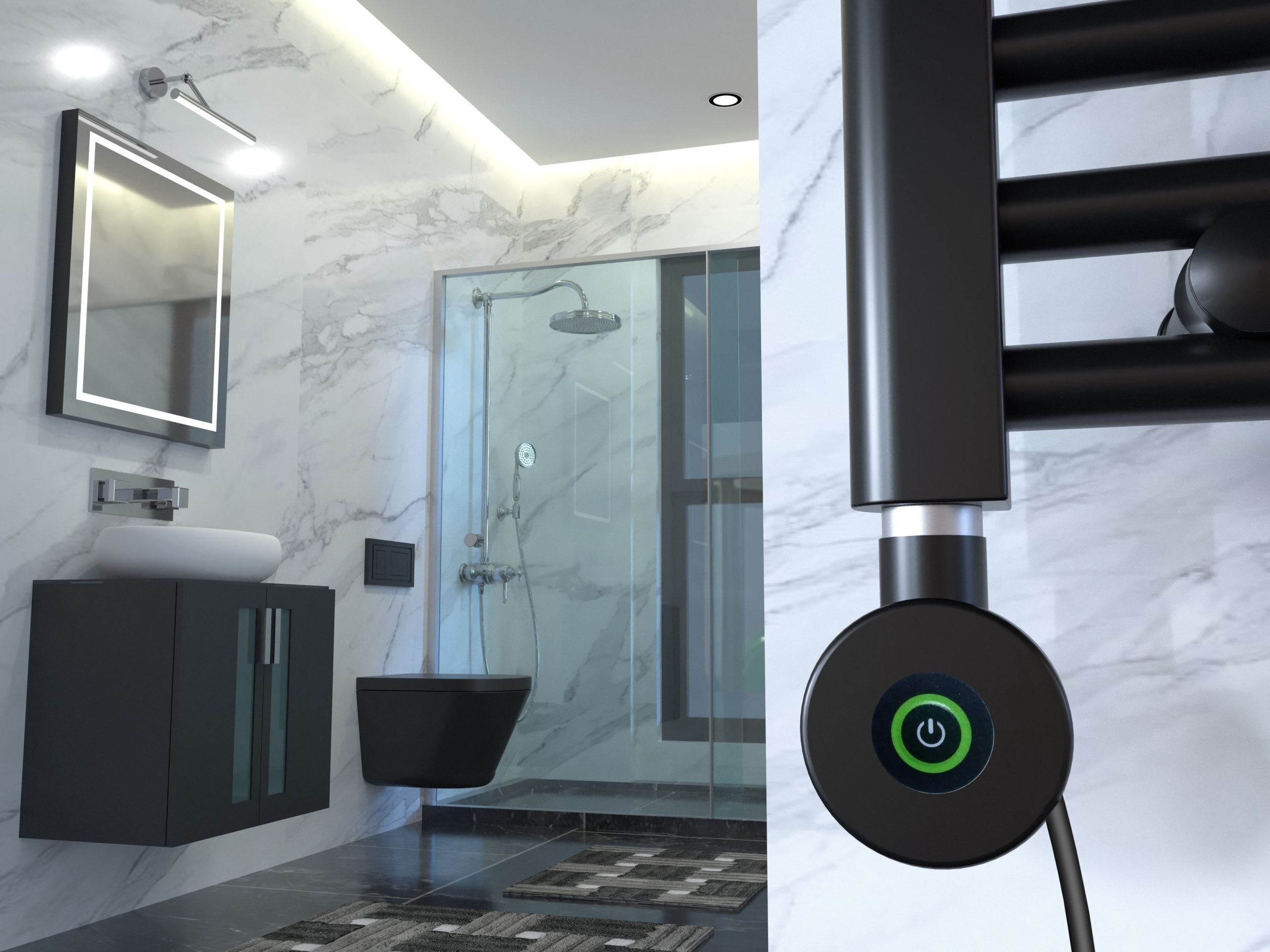 - Panel sterujący w kolorze czarnym matowym, który harmonijnie komponuje się z grzejnikiem.
