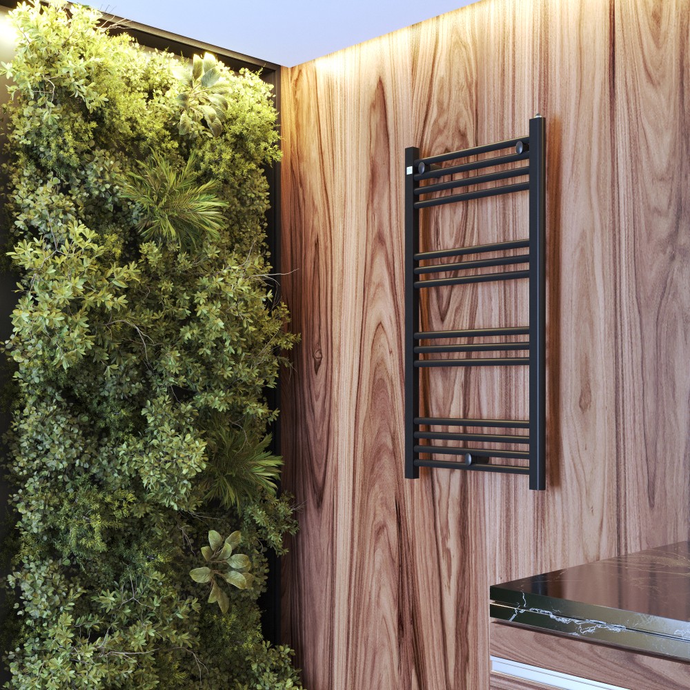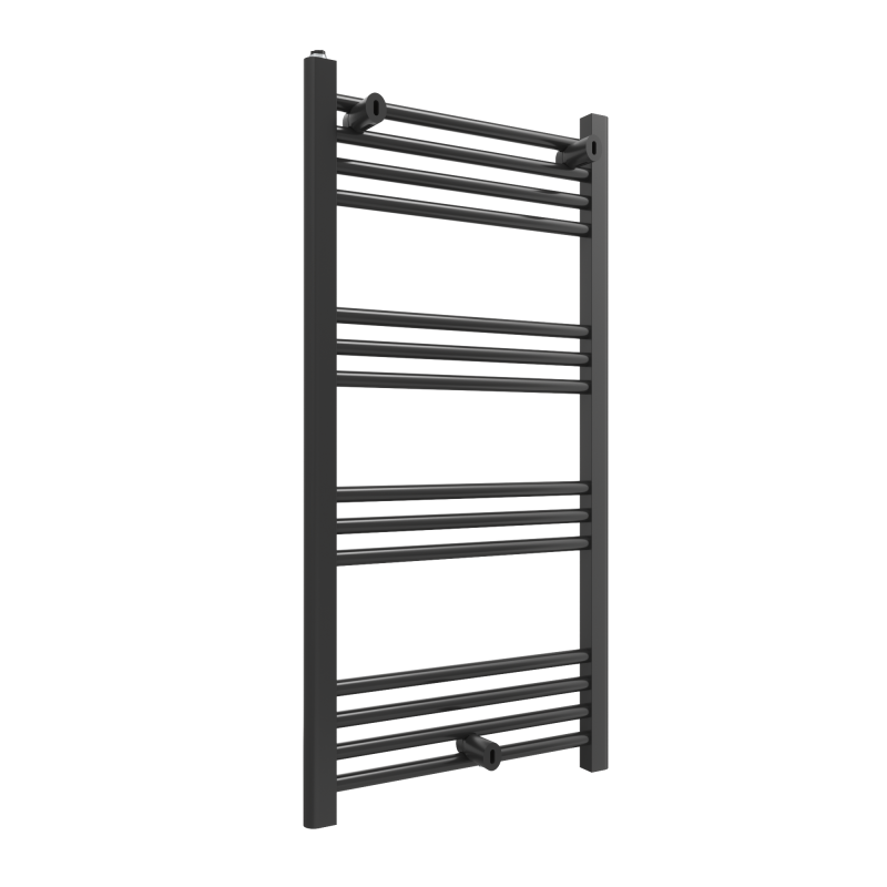 Grzejnik łazienkowy Peutro o wymiarach 100/50 cm doskonale sprawdza się w każdej łazience, niezależnie od jej stylu czy wielkości. Minimalistyczny kształt oraz uniwersalny czarny kolor umożliwiają zastosowanie zarówno w klasycznych, jak i w nowoczesnych aranżacjach. Dzięki możliwości podłączenia grzałki elektrycznej One Touch, produkt jest wyjątkowo praktyczny, zapewniając ciepło i komfort przez cały rok.