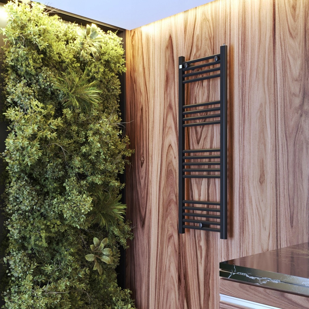 Minimalistyczny i elegancki wygląd grzejnika Puerto sprawia, że stanowi on nie tylko praktyczne urządzenie, lecz także dekoracyjny element wnętrza. Jego uniwersalny, czarny kolor w matowym wykończeniu doskonale komponuje się z różnorodnymi aranżacjami, od minimalistycznych po klasyczne i industrialne. Prosta forma grzejnika nie dominuje wnętrza, ale subtelnie je uzupełnia, podkreślając styl przestrzeni kąpielowej.
