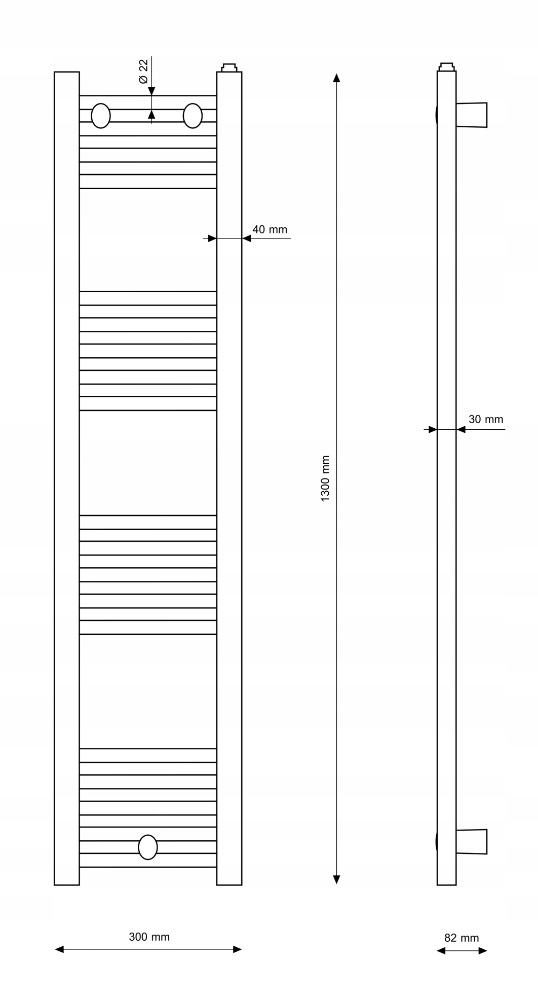 Grzejnik łazienkowy Puerto jest łatwy do zamontowania, nawet w przypadku osób, które nie mają dużego doświadczenia w instalacji tego typu urządzeń. W zależności od wysokości modelu, montaż odbywa się przy użyciu trzech lub czterech uchwytów, co zapewnia stabilność i bezpieczeństwo użytkowania. Model 30/130 cm wymaga trzech punktów montażowych – dwóch na górze i jednego na dole, co dodatkowo ułatwia instalację.