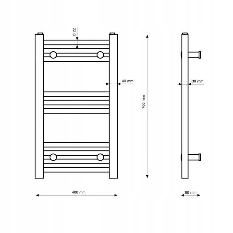 Grzejnik łazienkowy drabinkowy 40×80 cm czarny nowoczesny BRENO