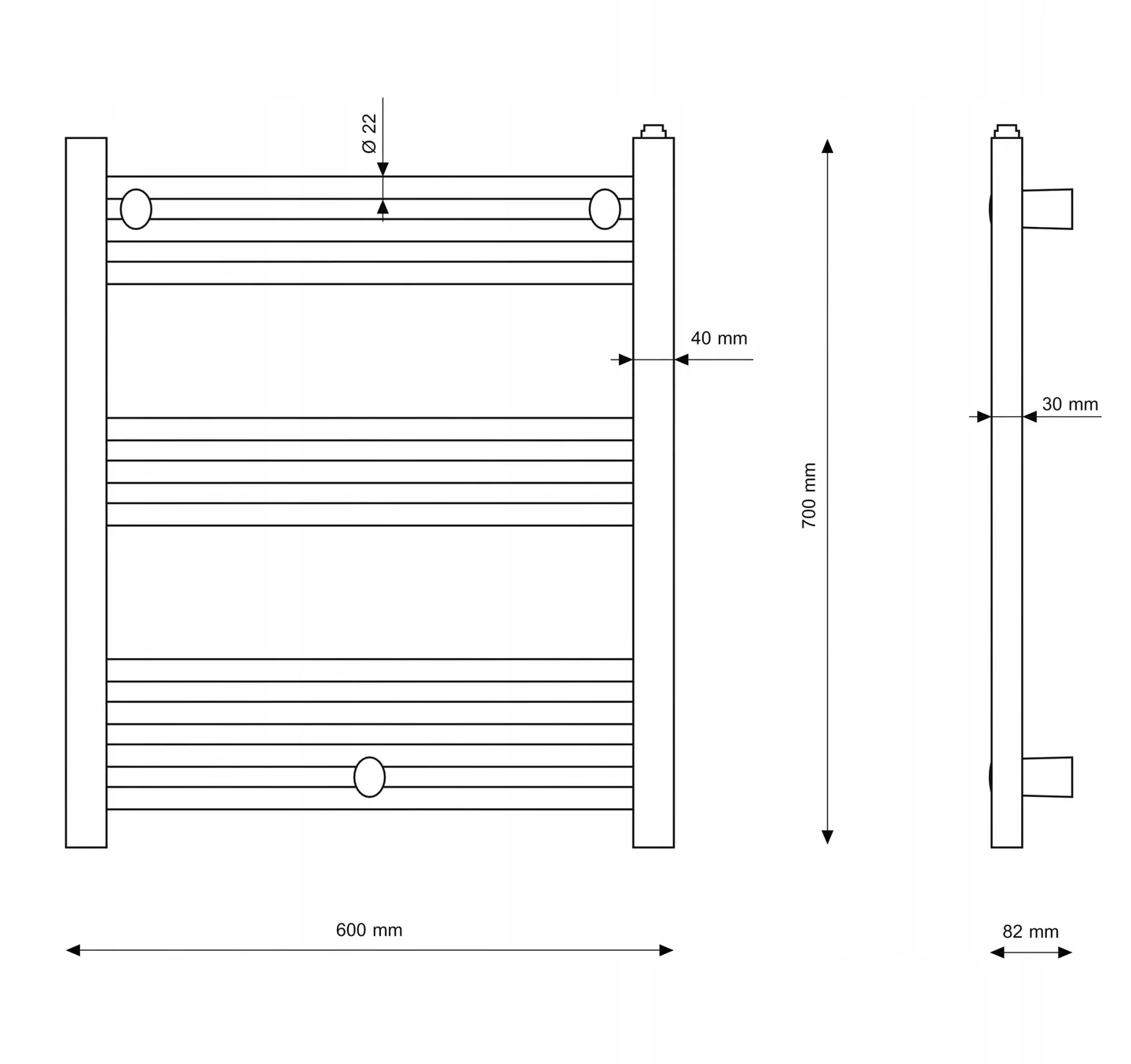 Drabinkowa konstrukcja grzejnika Puerto oferuje funkcjonalność, która sprawdzi się w codziennym użytkowaniu. Możliwość suszenia ręczników i elementów garderoby czyni z niego praktyczne rozwiązanie do każdej łazienki, zarówno w domu, jak i w przestrzeniach użytkowych. Dodatkowo w przypadku mniejszych wymiarów grzejników montaż odbywa się w sposób prosty i intuicyjny dzięki trzem punktom montażowym, co ułatwia instalację i stabilność urządzenia.