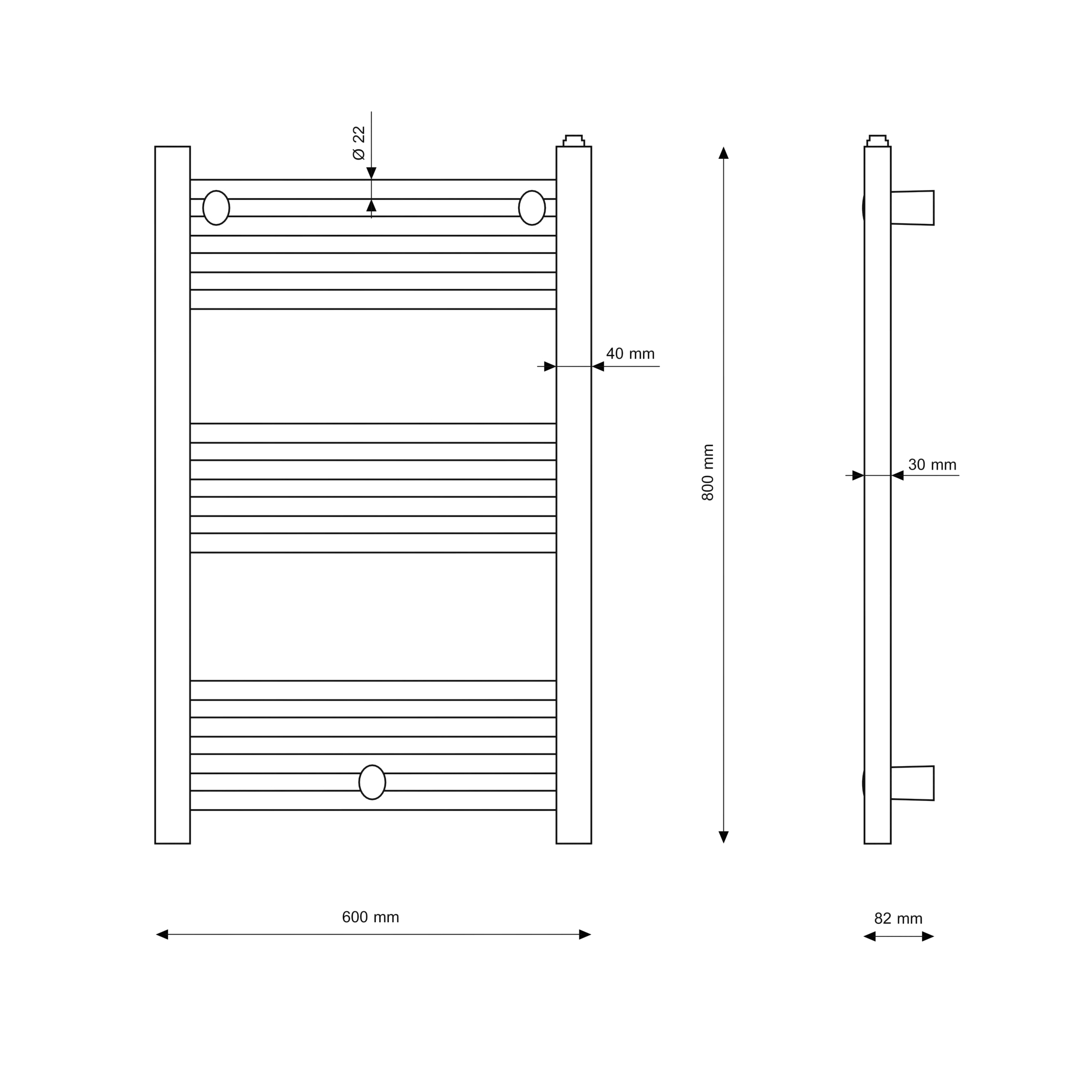 Grzejnik łazienkowy Peutro został zaprojektowany z myślą o łatwym montażu oraz intuicyjnej obsłudze. Standardowe dolne podłączenie oraz precyzyjnie dopasowane trzy punkty montażowe (dwa na górze i jeden na dole) gwarantują stabilną instalację i trwałość na lata. W małych i średnich łazienkach montaż odbywa się przy użyciu dostarczonych uchwytów, co dodatkowo ułatwia użytkowanie. Grzałka elektryczna również nie wymaga skomplikowanej instalacji i natychmiast po podłączeniu jest gotowa do pracy.