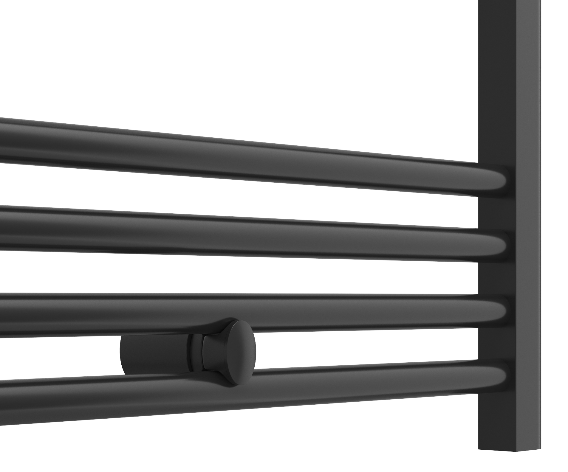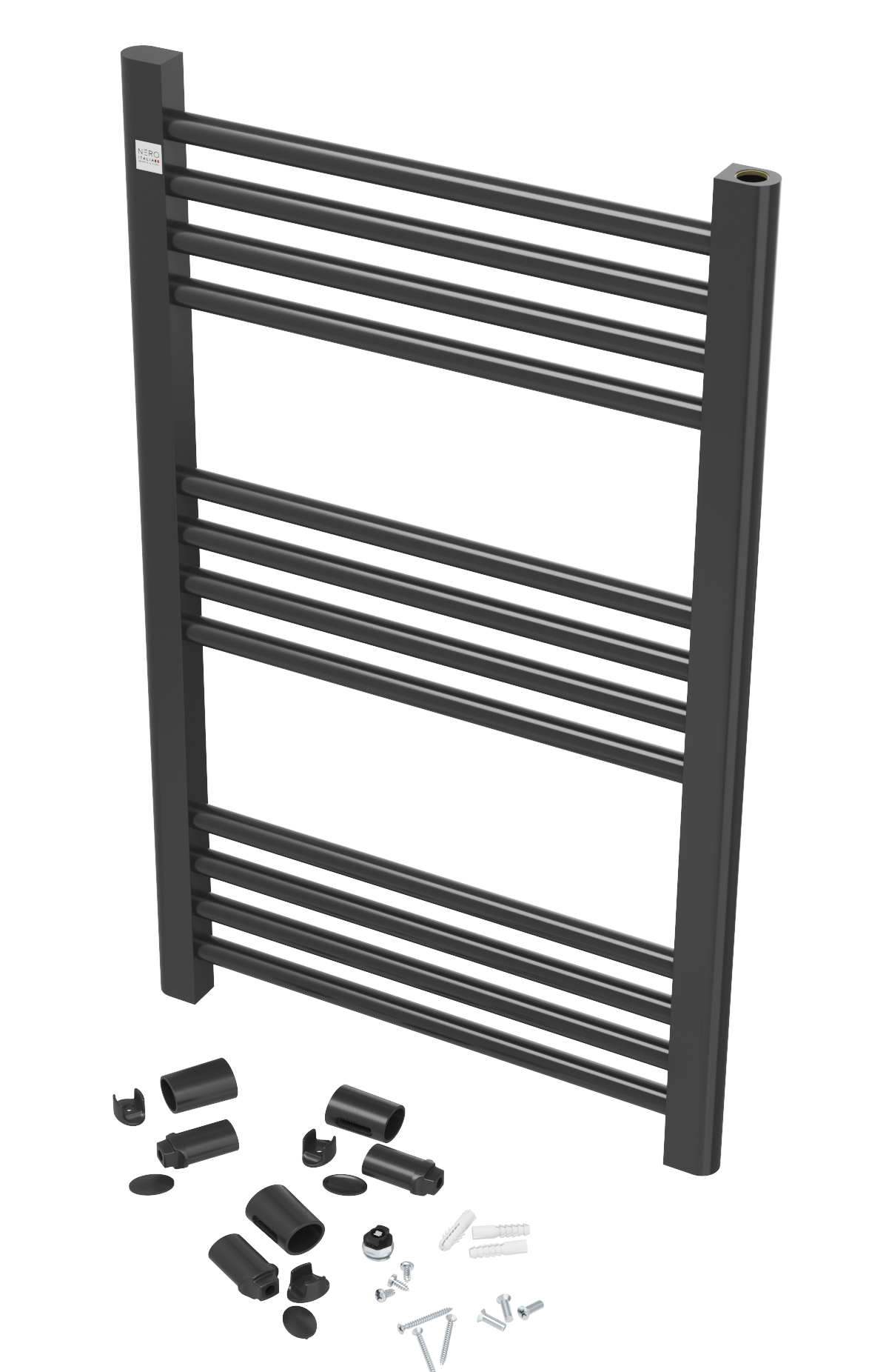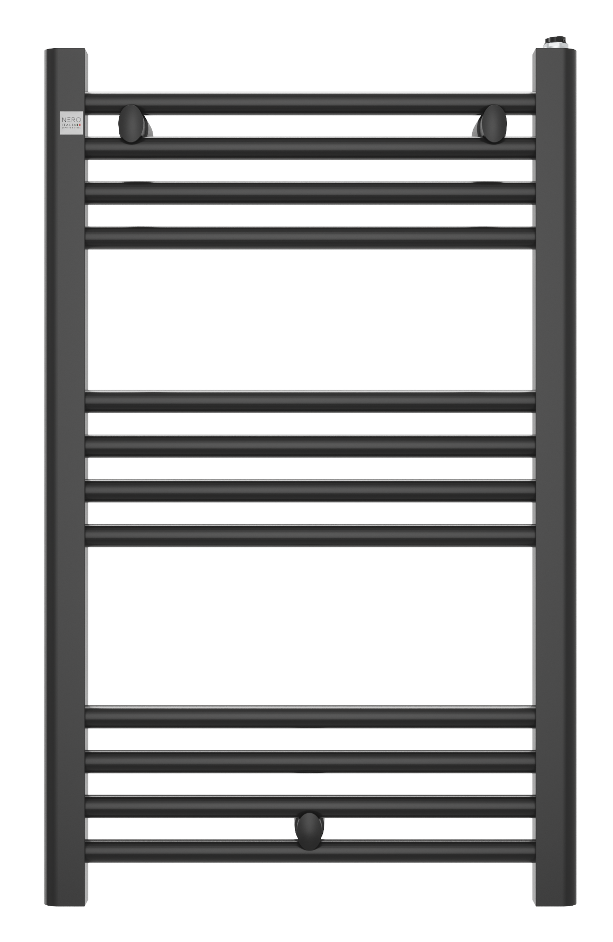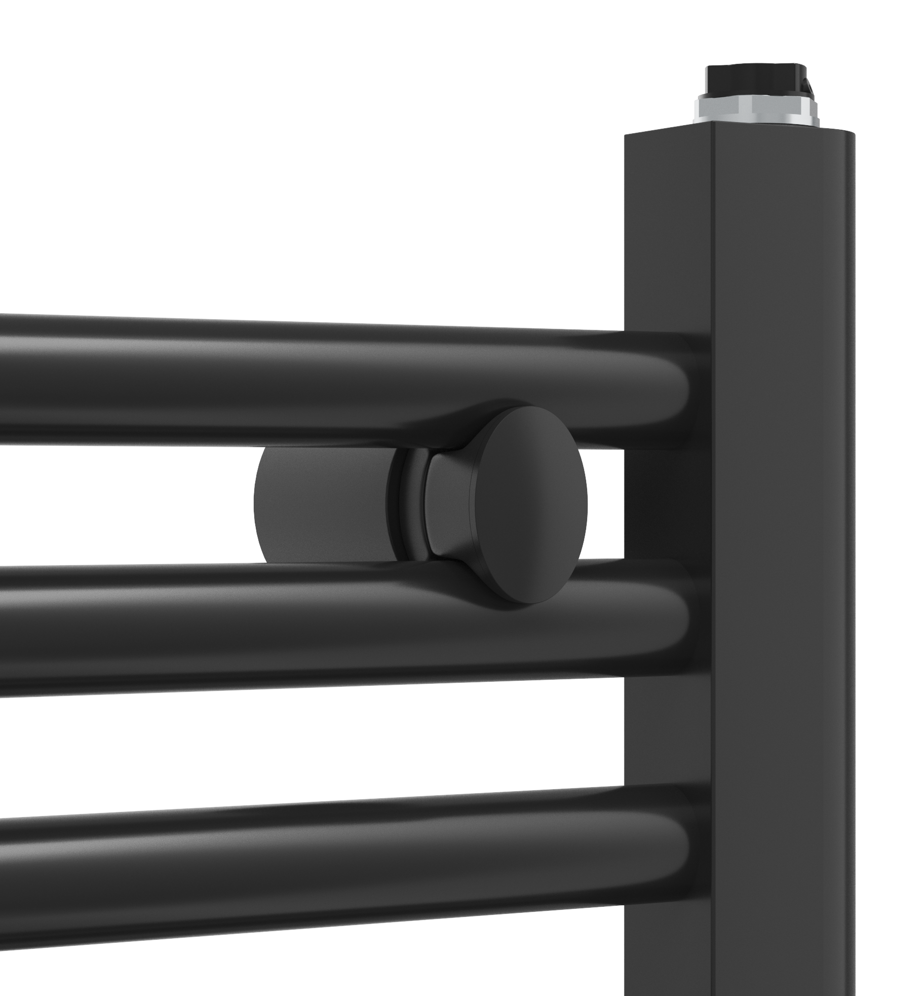 Grzejnik łazienkowy 80/50 cm czarny Peutro z dołączoną grzałką elektryczną One Touch to idealne rozwiązanie dla osób ceniących nowoczesność, funkcjonalność oraz estetykę w swojej łazience. Dzięki minimalistycznej formie i uniwersalnemu, czarnemu wykończeniu, grzejnik doskonale wkomponuje się w aranżacje każdego wnętrza, niezależnie od stylu. Produkt przeznaczony jest do montażu zarówno w tradycyjnym systemie grzewczym, jak i w opcji elektrycznej, co sprawia, że jest wyjątkowo wszechstronny. Ten model imponuje nie tylko wyglądem, ale także trwałością i praktycznością, które docenią nawet najbardziej wymagający użytkownicy.