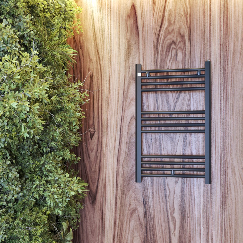 Grzejnik łazienkowy 80/50 cm czarny Peutro z grzałką elektryczną One Touch to eleganckie i funkcjonalne rozwiązanie dla osób, które oczekują wysokiej jakości oraz nowoczesnego wyglądu w swojej łazience. Produkt został wykonany z dbałością o każdy detal, dzięki czemu nie tylko świetnie prezentuje się w różnych aranżacjach wnętrz, ale także oferuje doskonałe parametry użytkowe. To idealny wybór dla osób szukających trwałego i estetycznego urządzenia do swojej łazienki.