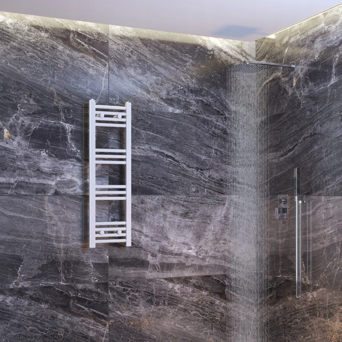Grzejnik łazienkowy biały drabinkowy 30×100 cm Kaloryfer nowoczesny Breno to doskonałe rozwiązanie do każdej współczesnej łazienki. Łączy funkcjonalność z estetyką, oferując komfort cieplny oraz możliwość suszenia ręczników i innych elementów garderoby. Dzięki minimalistycznemu designowi, model ten wpasuje się w różne style aranżacyjne, jednocześnie nie przytłaczając przestrzeni. Nowoczesne grzejniki drabinkowe są idealnym wyborem dla osób ceniących prostotę, trwałość i wygodę użytkowania. Biały kolor nadaje łazience elegancji i uniwersalnego charakteru, dzięki czemu grzejnik stanowi również atrakcyjny element dekoracyjny.