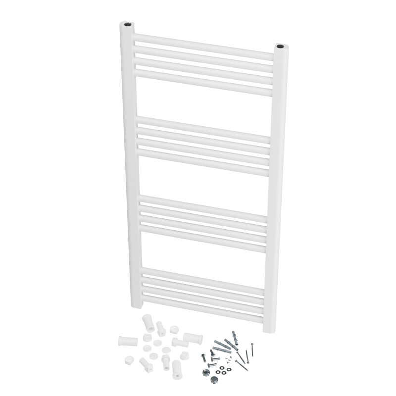 Biały grzejnik drabinkowy BRENO to ponadczasowe rozwiązanie, które harmonijnie łączy się z nowoczesnym, minimalistycznym designem łazienek. Kolor biały optycznie powiększa przestrzeń, nadaje wnętrzu świeżości i lekkości, jednocześnie uwydatniając inne elementy wystroju. Grzejnik ten świetnie komponuje się z różnorodnymi stylami aranżacyjnymi – od klasycznych i skandynawskich po industrialne.