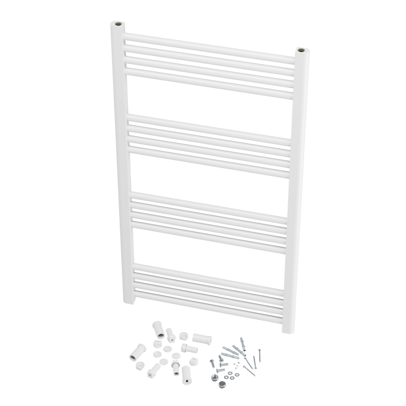 Grzejnik łazienkowy Breno jest wyposażony w standardowy zestaw do montażu, który zawiera uchwyty zapewniające stabilność i bezpieczeństwo użytkowania. Dzięki dwojakiemu systemowi montażu instalacja jest maksymalnie prosta i elastyczna – możesz zamontować produkt w klasyczny sposób lub obrócić go o 180 stopni. Wszystko to sprawia, że montaż nie wymaga specjalistycznej wiedzy ani dodatkowych akcesoriów.