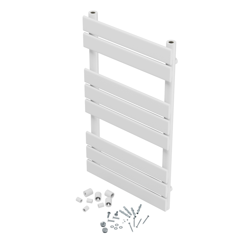 Łatwość utrzymania czystości to kolejny atut. Dzięki odpowiednio rozmieszczonym szczeblom oraz gładkiej powierzchni czyszczenie grzejnika jest proste i szybkie. Dodatkowo, produkt został zaprojektowany z myślą o komforcie użytkowania, co podkreśla łatwość montażu oraz możliwość integracji z różnymi systemami grzewczymi. Do zestawu dołączone są elementy montażowe, co umożliwia szybkie przystąpienie do instalacji bez konieczności poszukiwania dodatkowych akcesoriów.
