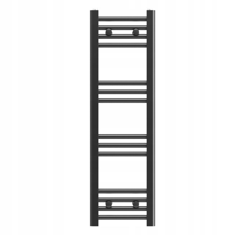Grzejnik łazienkowy czarny drabinkowy 30×100 cm Breno to nowoczesne rozwiązanie, które skutecznie łączy estetykę i funkcjonalność. Jego minimalistyczny design idealnie wpisuje się w aranżacje współczesnych łazienek, nadając im wyjątkowego charakteru. Model ten jest nie tylko praktycznym źródłem ciepła, ale także wygodnym miejscem do suszenia ręczników i odzieży. Dzięki ponadczasowemu wykończeniu w uniwersalnym czarnym kolorze produkt ten harmonijnie pasuje do różnych stylów wnętrzarskich, od klasycznych po nowoczesne. Grzejnik Breno to połączenie solidności wykonania, trwałych materiałów oraz estetyki, które sprawdzi się w każdej przestrzeni kąpielowej.
