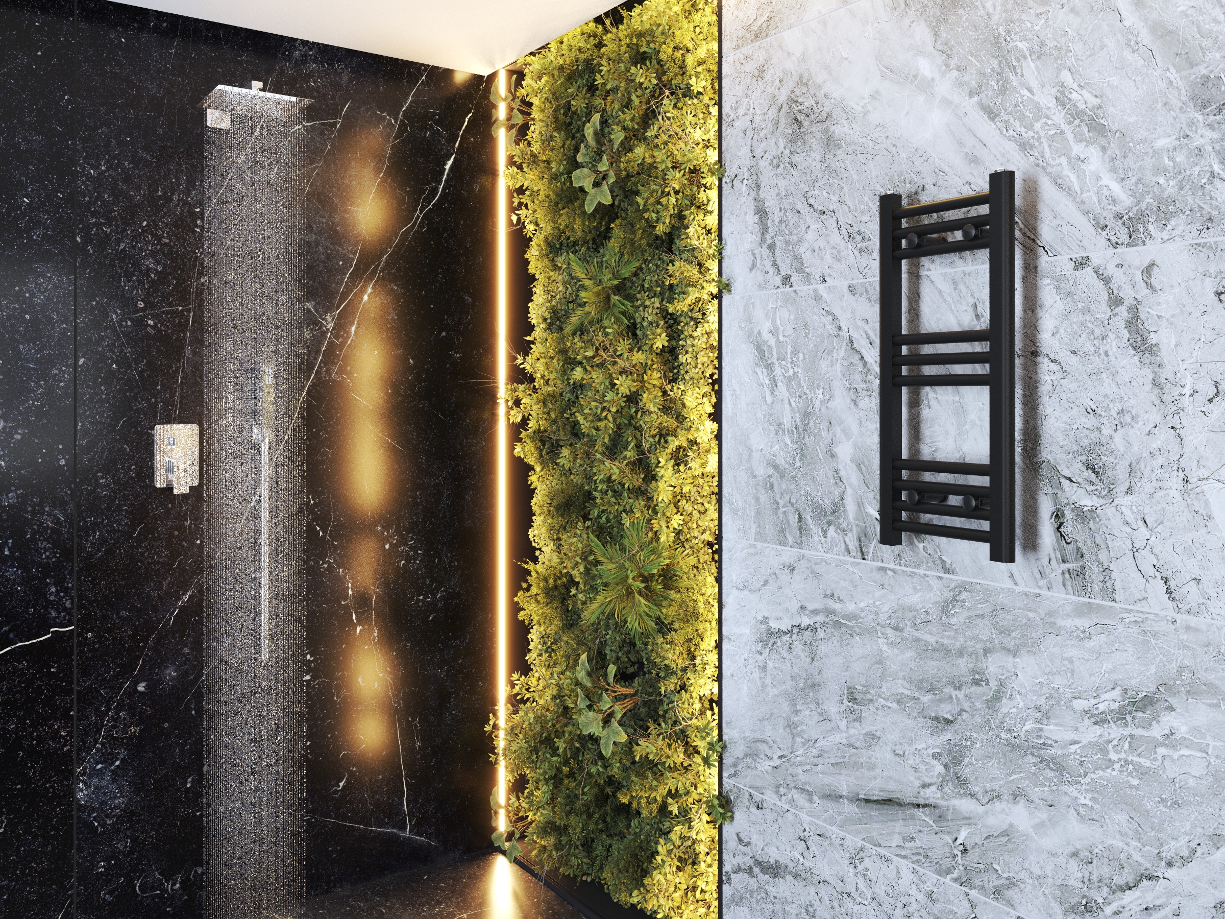 Grzejnik łazienkowy Breno to połączenie wysokich standardów technologicznych z estetyką, która podkreśla wystrój każdej łazienki. Klasyczny, prosty kształt dobrze komponuje się z różnorodnymi stylami wnętrzarskimi, od minimalistycznych, poprzez industrialne, aż po nowoczesne. Czarny kolor grzejnika dodaje wnętrzu elegancji i nowoczesnego charakteru.