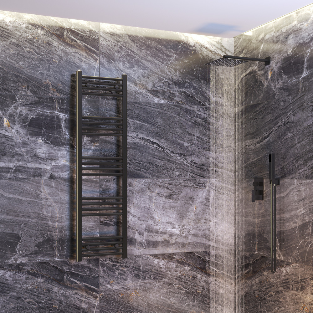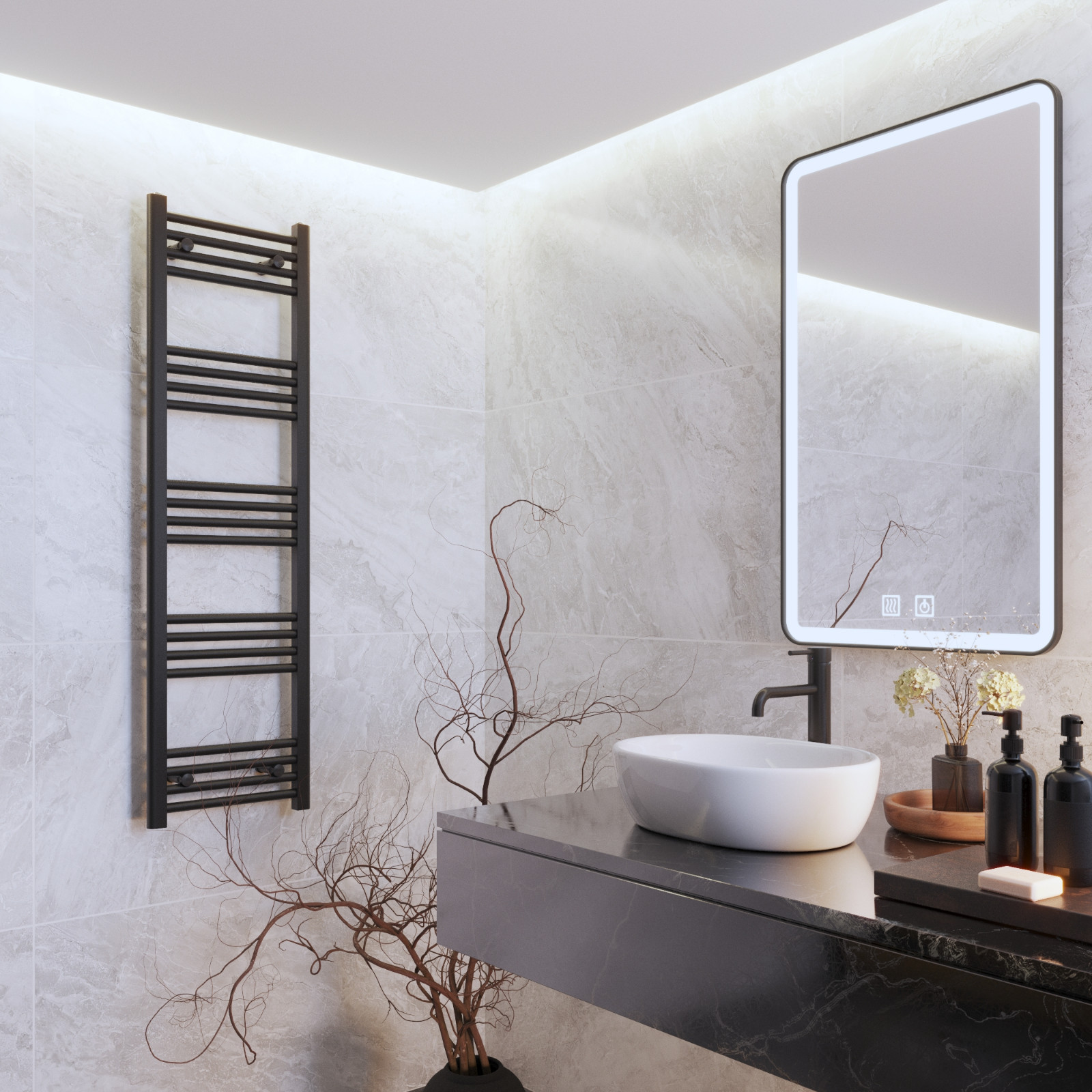 Minimalistyczna stylistyka grzejnika Breno sprawia, że stanowi on nie tylko funkcjonalny element łazienki, ale również jej ozdobę. Czarny kolor wykończenia wpisuje się w najnowsze trendy wnętrzarskie, nadając pomieszczeniu nowoczesnego i eleganckiego charakteru. Idealnie komponuje się zarówno z jasnymi, jak i ciemnymi aranżacjami, stanowiąc ciekawy kontrast lub uzupełniając współczesną kolorystykę łazienek.
