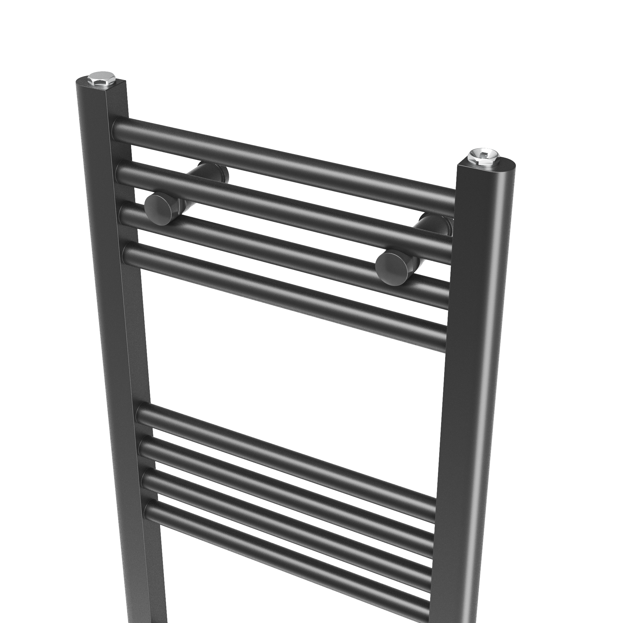 Grzejnik łazienkowy czarny drabinkowy 40×140 cm z serii Breno to doskonałe połączenie funkcjonalności i estetyki. Jego minimalistyczny design oraz klasyczny czarny kolor idealnie wpasują się w aranżację nowoczesnych łazienek, nadając im elegancki i ponadczasowy charakter. Dzięki swojej konstrukcji grzejnik nie tylko ogrzewa pomieszczenie, ale również pełni funkcję praktyczną – można na nim wygodnie suszyć ręczniki czy drobne elementy garderoby. Model posiada możliwość montażu grzałki elektrycznej, co umożliwia korzystanie z ciepła również poza sezonem grzewczym. To praktyczne i stylowe rozwiązanie dla każdej łazienki.