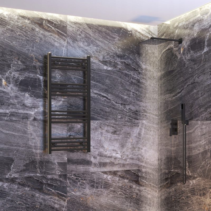 Grzejnik łazienkowy czarny drabinkowy 50×110 cm Breno to nowoczesne rozwiązanie łączące funkcjonalność z estetyką. Model ten doskonale sprawdzi się w każdej współczesnej łazience. Minimalistyczny design i ponadczasowy kolor czerni nadają mu eleganckiego charakteru, który podkreśli wystrój wnętrza. Grzejnik ten nie tylko skutecznie ogrzewa pomieszczenie, ale również pełni funkcję praktycznego suszaka na ręczniki lub elementy garderoby. Dzięki możliwości podłączenia grzałki elektrycznej można z niego korzystać nawet poza sezonem grzewczym, co czyni go wyjątkowo uniwersalnym.