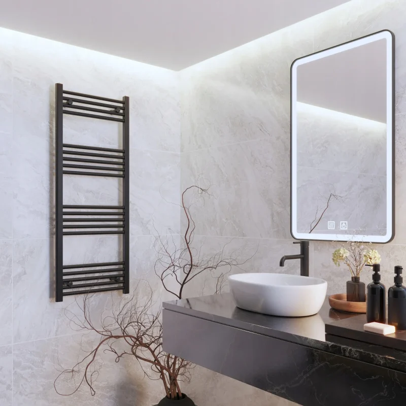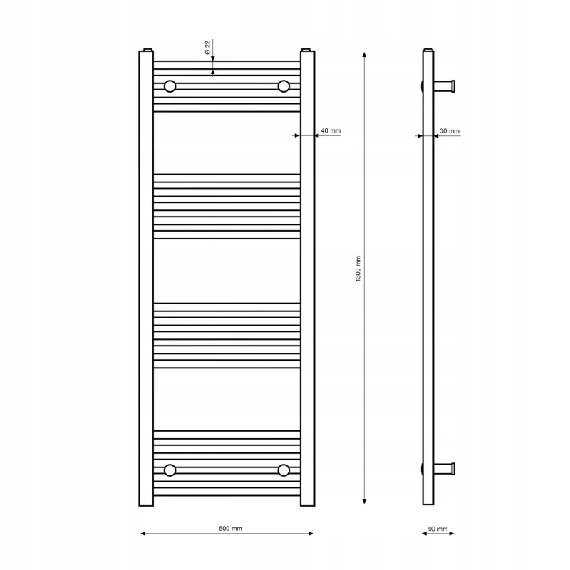 Grzejnik łazienkowy czarny drabinkowy 50×130 cm montaż 180° BRENO