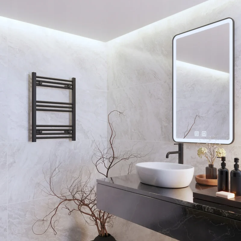 Czarny Grzejnik Łazienkowy Drabinkowy 50×70 cm BRENO Montaż 180°