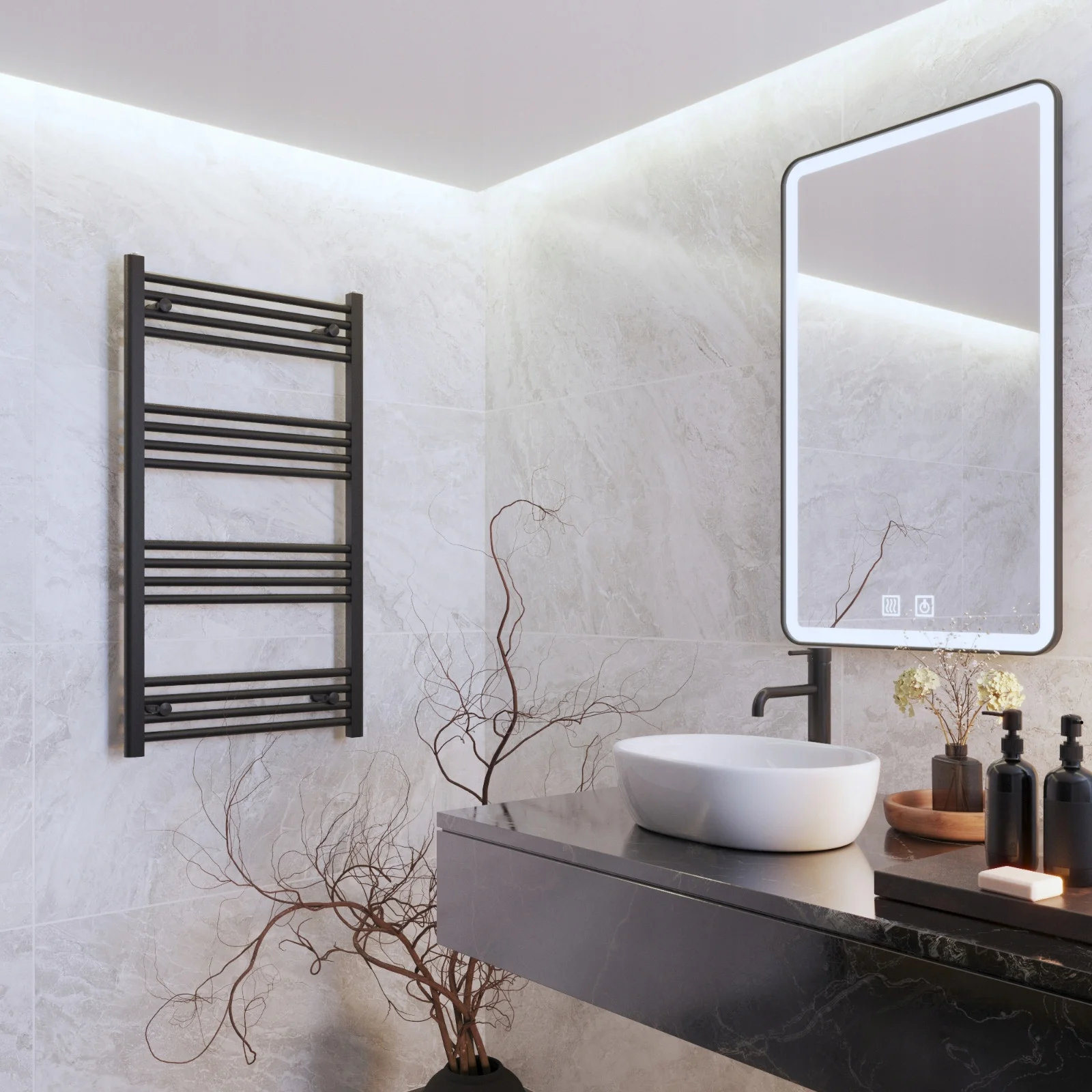 Minimalistyczny design grzejnika Breno sprawia, że doskonale komponuje się z różnorodnymi aranżacjami wnętrz. Czarna kolorystyka dodaje łazience klasycznego, a jednocześnie nowoczesnego wyglądu. Urządzenie pasuje zarówno do stylu industrialnego, jak i skandynawskiego czy glamour, doskonale wypełniając wolne przestrzenie na ścianach i stając się praktycznym elementem dekoracyjnym.
