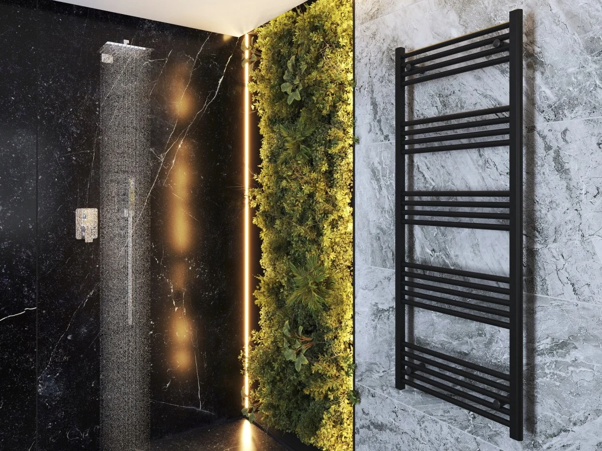 Grzejnik łazienkowy BRENO to niezawodne rozwiązanie, które spełni oczekiwania nawet najbardziej wymagających użytkowników. Jego przemyślany design sprawia, że jest nie tylko praktycznym urządzeniem grzewczym, ale także stylowym dodatkiem do wnętrza. Czerń jest kolorem ponadczasowym, który świetnie pasuje zarówno do minimalistycznych, nowoczesnych łazienek, jak i bardziej klasycznych aranżacji.