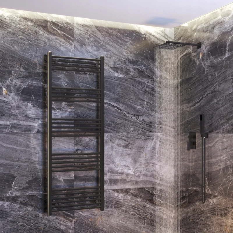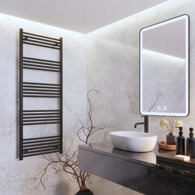 Czarny Grzejnik Łazienkowy Drabinkowy 60×160 cm BRENO z Montażem 180°
