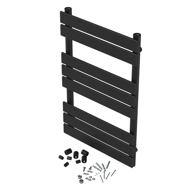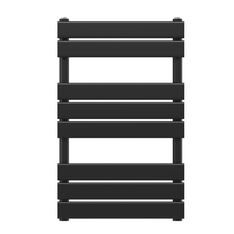 Grzejnik wyposażony jest w płaskie belki poziome, które nie tylko nadają mu elegancji, ale także umożliwiają wygodne suszenie ręczników, bielizny czy drobnych elementów odzieży. Jego matowa, czarna powłoka sprawia, że jest łatwy do utrzymania w czystości, a jego wytrzymałość i uniwersalność wyróżniają go wśród innych produktów dostępnych na rynku.