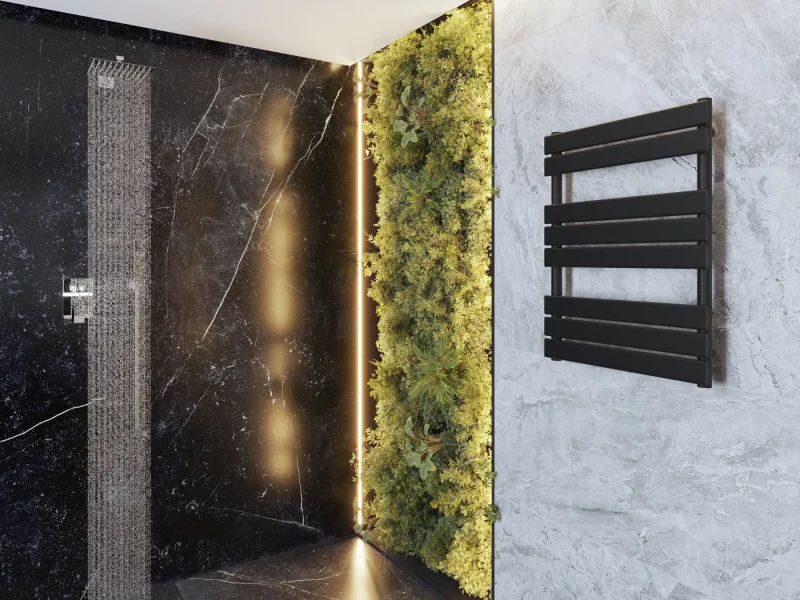 Grzejnik łazienkowy Oslo to idealne rozwiązanie dla osób poszukujących stylowego i funkcjonalnego wyposażenia do łazienki. Dzięki swojemu nowoczesnemu wyglądowi doskonale odnajdzie się w różnych aranżacjach wnętrz. Minimalistyczna forma, poziome belki oraz głęboka, czarna kolorystyka nadają mu elegancki i ponadczasowy charakter. Produkt został zaprojektowany z myślą o praktycznym użytkowaniu, oferując jednocześnie komfort termiczny i estetyczne wykończenie.