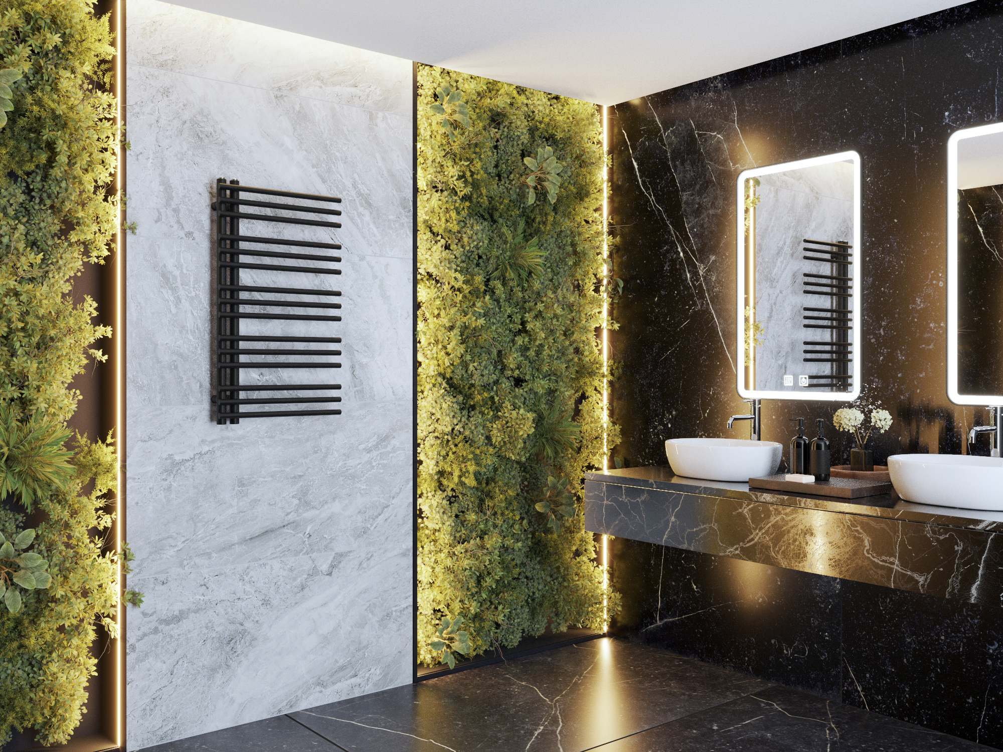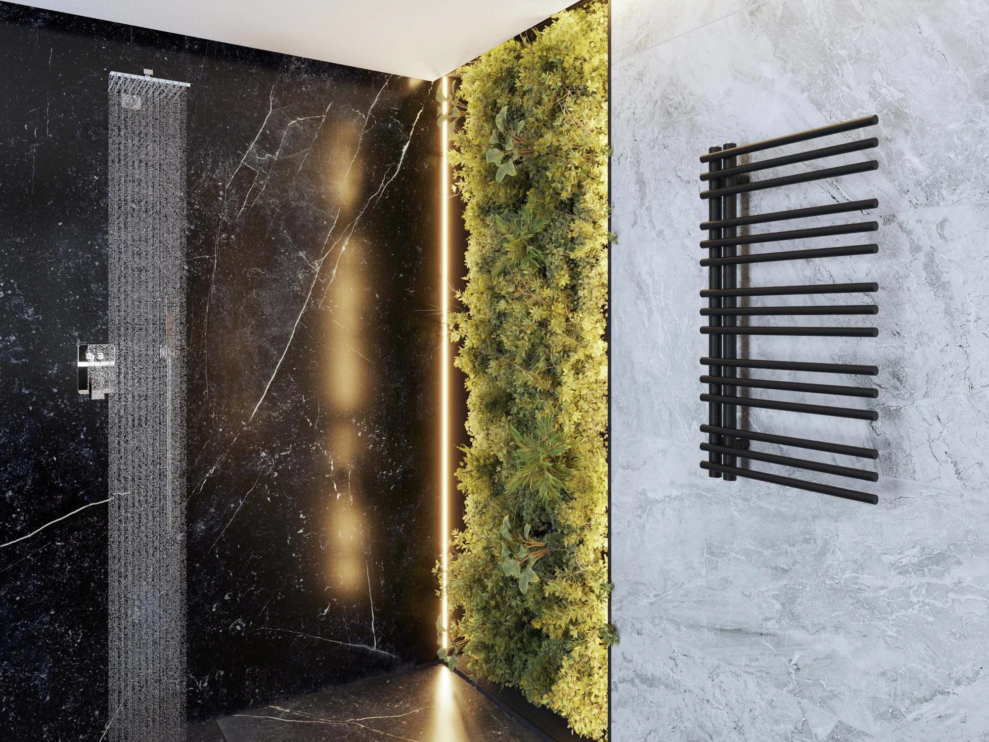 Grzejnik łazienkowy MILO wyróżnia się nowoczesnym wzornictwem, które podkreśla jego elegancki charakter. Kolor czarny nadaje mu wyjątkowego stylu, dzięki czemu doskonale pasuje do wnętrz o współczesnym charakterze. Minimalistyczna forma i smukłe linie są idealnym uzupełnieniem modernistycznych łazienek, gdzie liczy się zarówno funkcjonalność, jak i wyjątkowy wygląd.