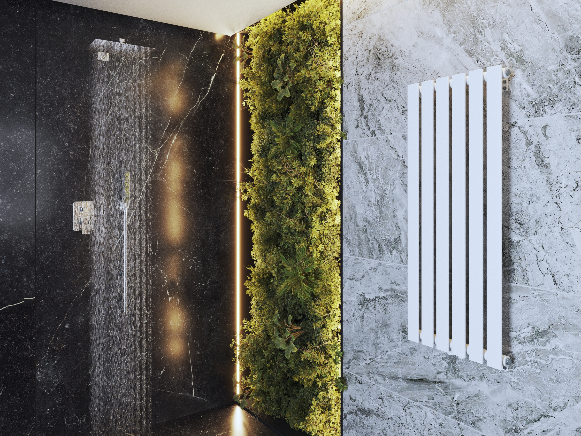 Biały kolor grzejnika to uniwersalne rozwiązanie, które pasuje do większości aranżacji. Kolorystyka ta sprawia, że model FERO świetnie odnajdzie się zarówno w pomieszczeniach urządzonych w stylu loftowym, jak i skandynawskim, klasycznym czy nowoczesnym. Dodatkowo, dzięki smukłej budowie, kaloryfer harmonijnie wpasowuje się w przestrzeń, bez zbędnego dominowania.