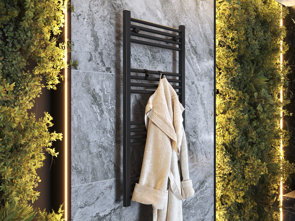 Bezinwazyjny haczyk wieszak czarny na grzejnik łazienkowy na ręcznik