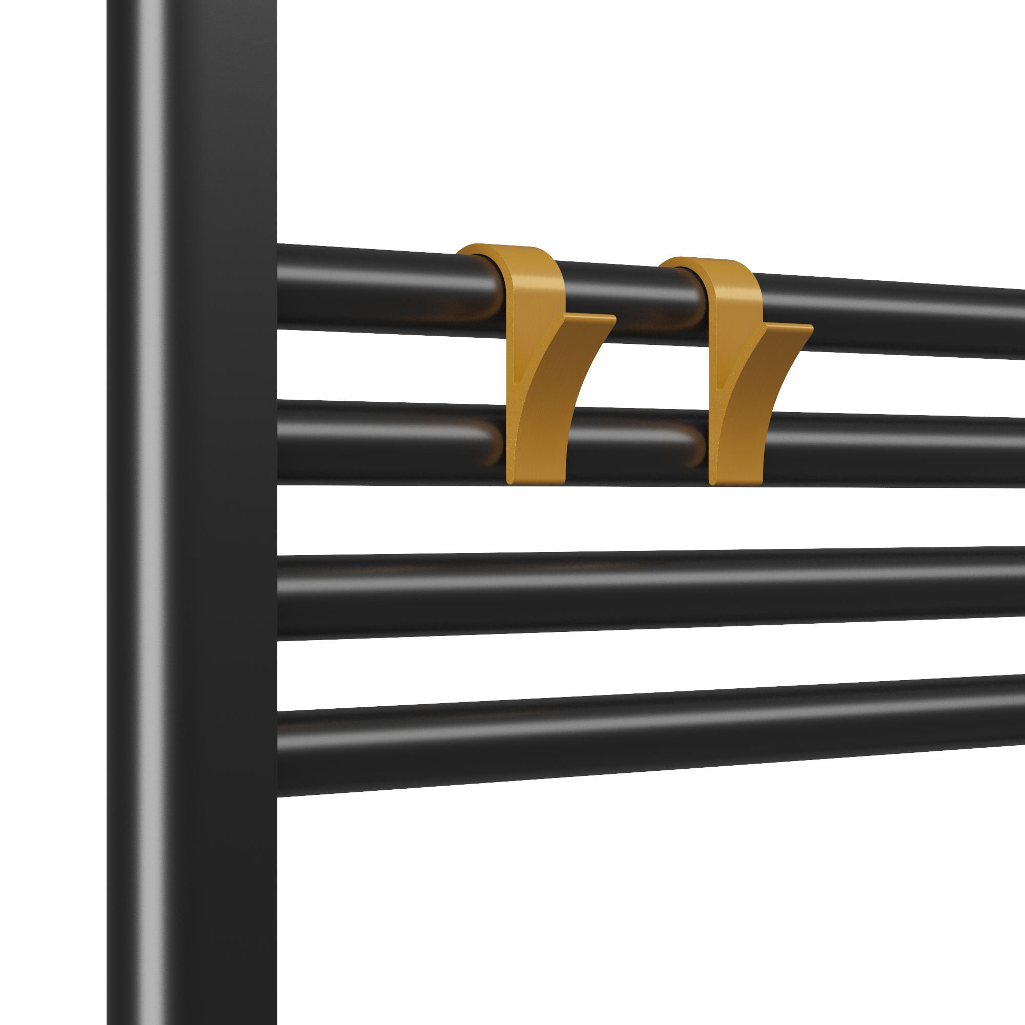 Ten wieszak na grzejnik wykonany jest z wysokiej jakości tworzywa PCV, które charakteryzuje się trwałością oraz odpornością na codzienne użytkowanie. Dzięki zastosowaniu materiału o grubości 3 mm, produkt skutecznie spełnia swoje funkcje, równocześnie zachowując lekkość oraz estetyczny wygląd. Kolor złoty nadaje całości eleganckiego charakteru, co czyni go doskonałym dodatkiem do wnętrz urządzonych w stylu glamour, minimalistycznym lub industrialnym.