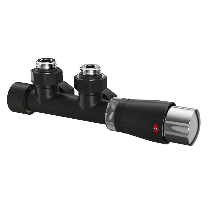 Zawór termostatyczny do grzejnika PEX 1/2″ czarny komplet mosiężny z głowicą