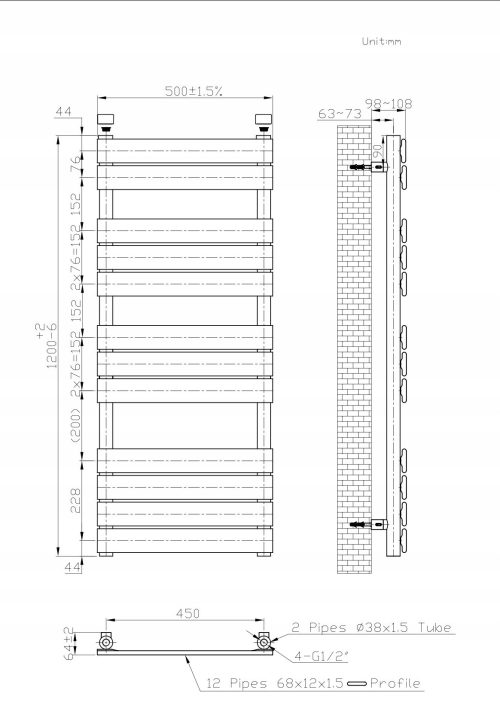 Grzejnik dekoracyjny pionowy FERO 1400×296 biały 458W